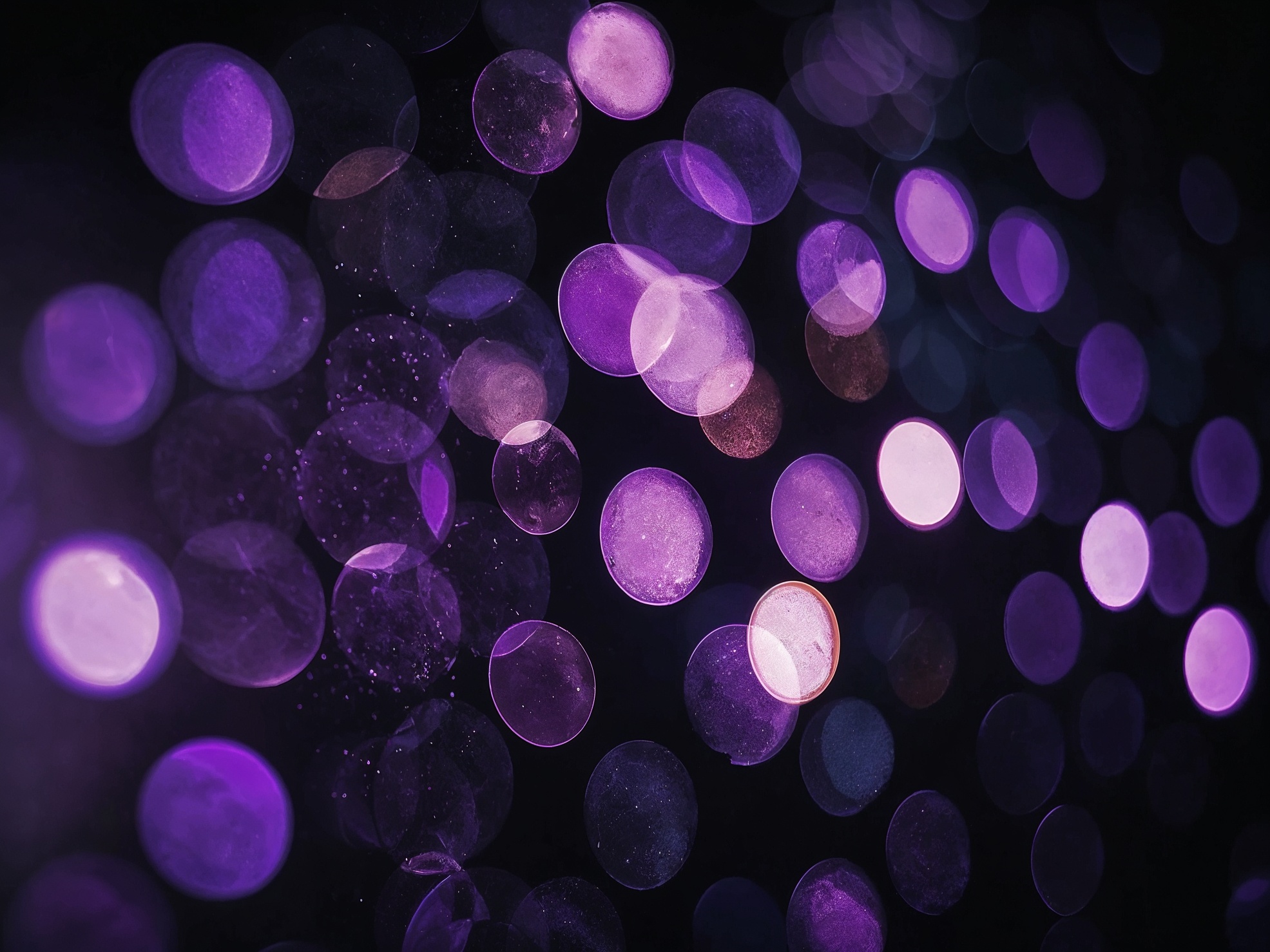 暗い背景に柔らかな光を放つ紫色のボケ円(フォーカス:1.2)の見事な配置が、幻想的な雰囲気を醸し出しています。