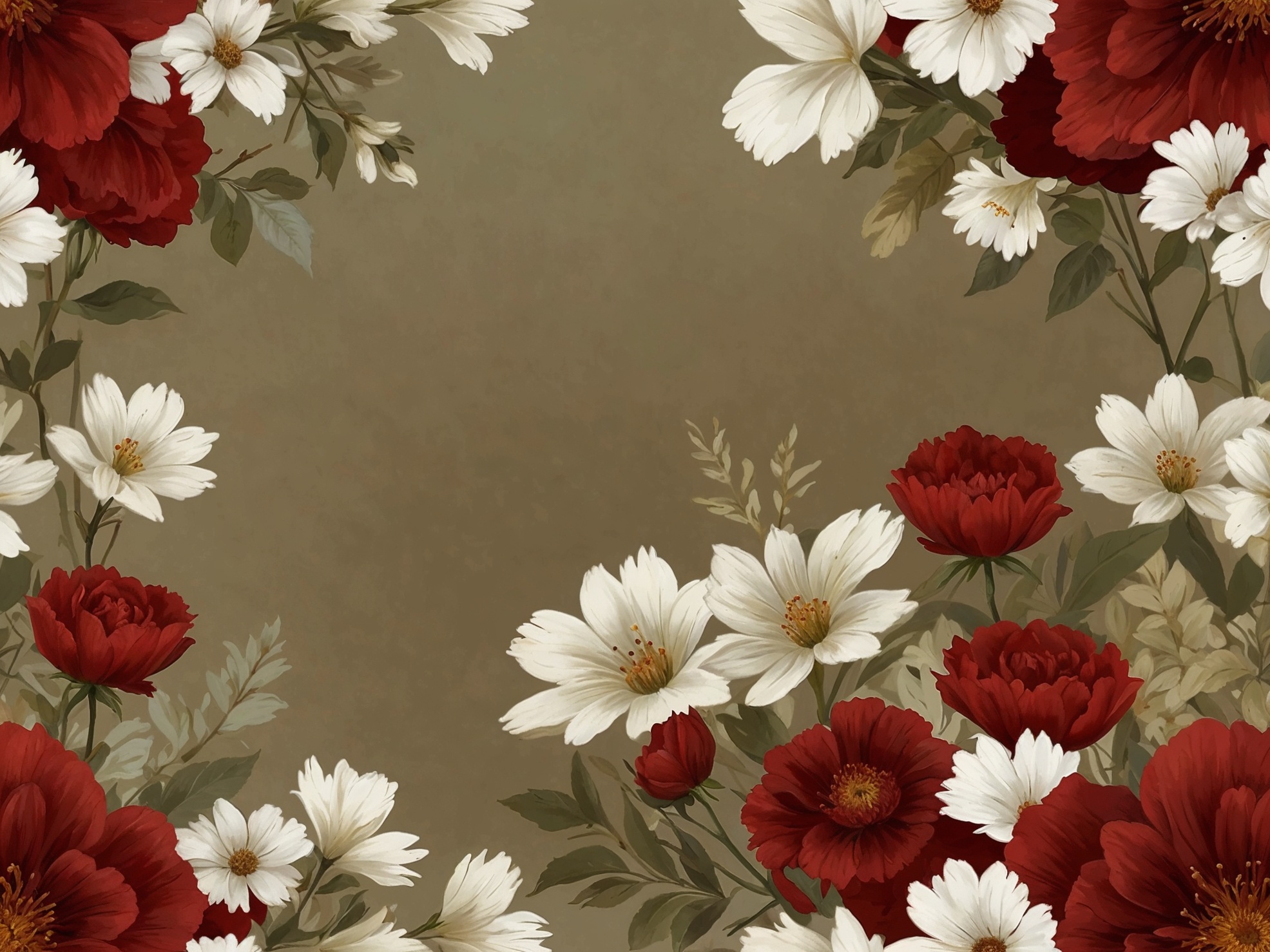 背景には、コントラストと奥行きを与えるため、柔らかく落ち着いたオリーブグリーン(色: 1.2)を基調とし、鮮やかな花々を引き立てました。