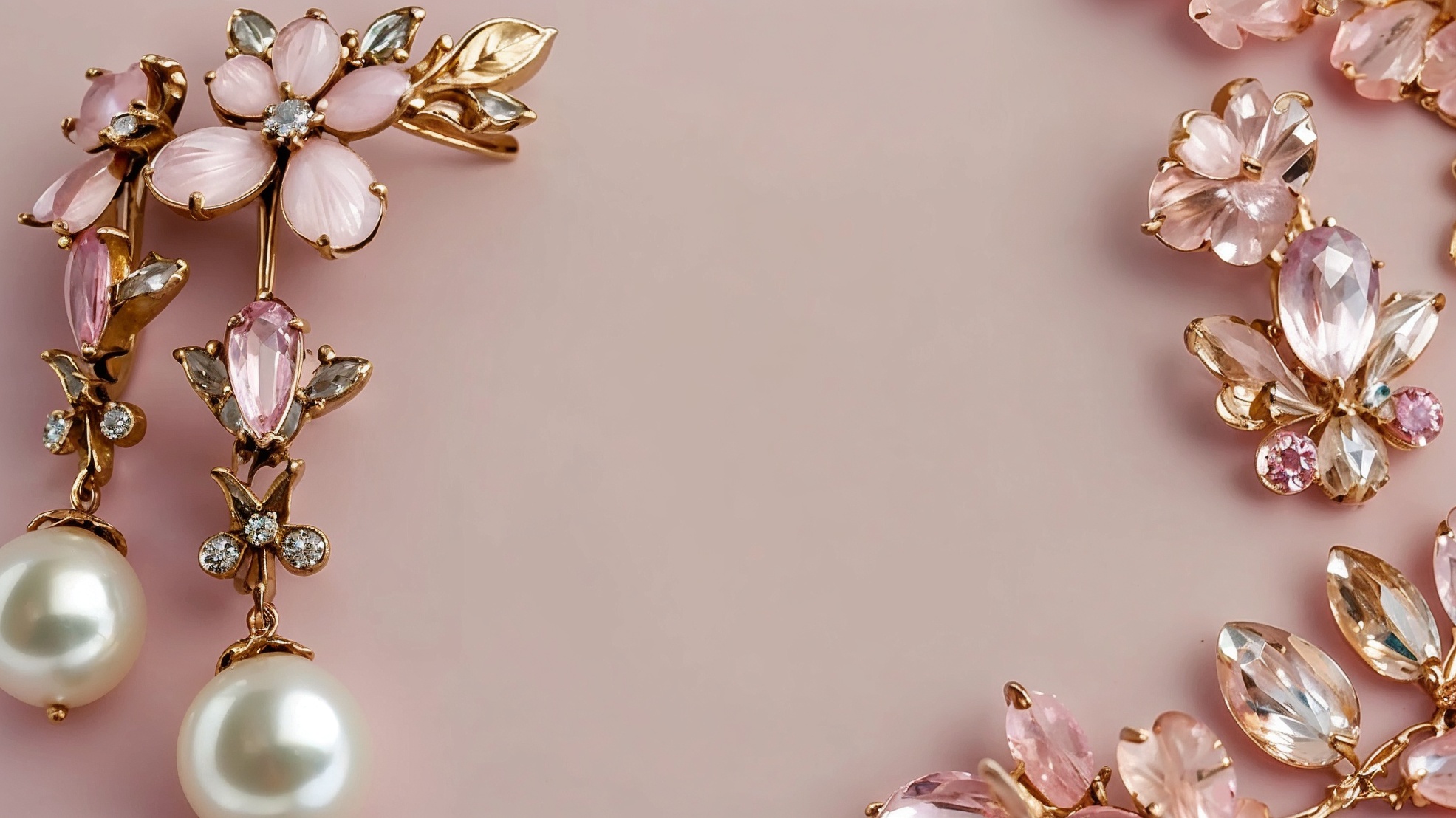 背景は、ジュエリーの優雅さを引き立てる柔らかなパステルピンク色に。